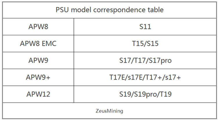 Antminer APW12 PSU 1215 a / b / c / d / e / f / g versión